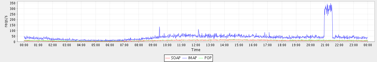 Host zm06.stanford.edu: Mailboxd: Request Rate by Client Protocol