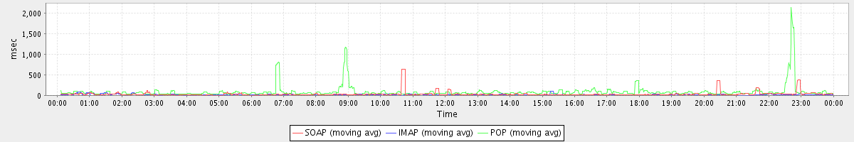 avg(IMAP) = 2.93 avg(IMAP SSL) = 700.05 avg(POP) = 0.72 avg(POP SSL) = 10.55