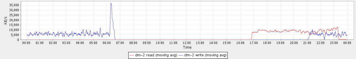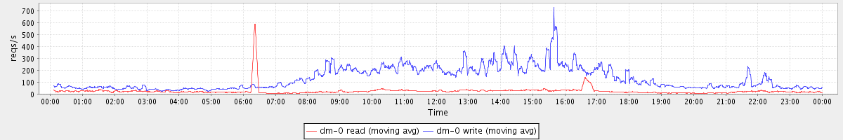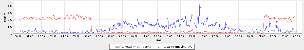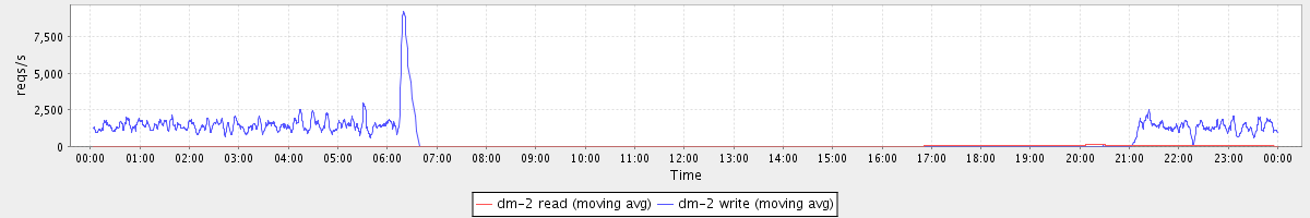 avg(dm-2 read) = 22.46 avg(dm-2 write) = 583.63