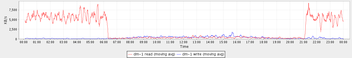 avg(dm-1 read) = 2354.38 avg(dm-1 write) = 313.65