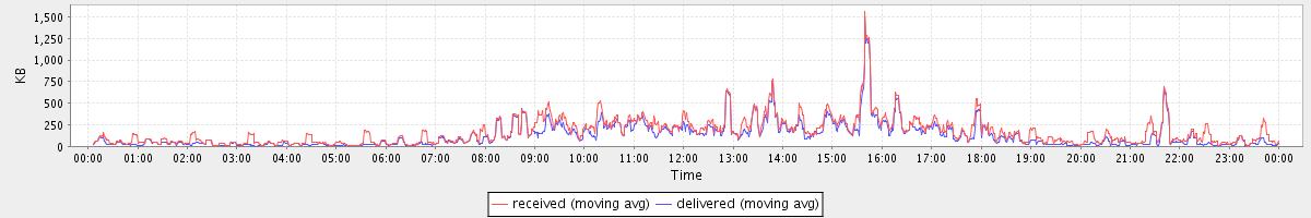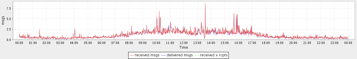 avg(received msgs) = 1.09 avg(delivered msgs) = 1.05 avg(received x rcpts) = 1.10