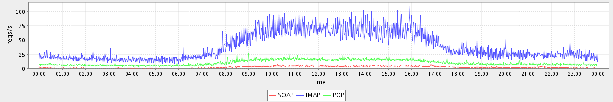Host zm07.stanford.edu: Mailboxd: Request Rate by Client Protocol
