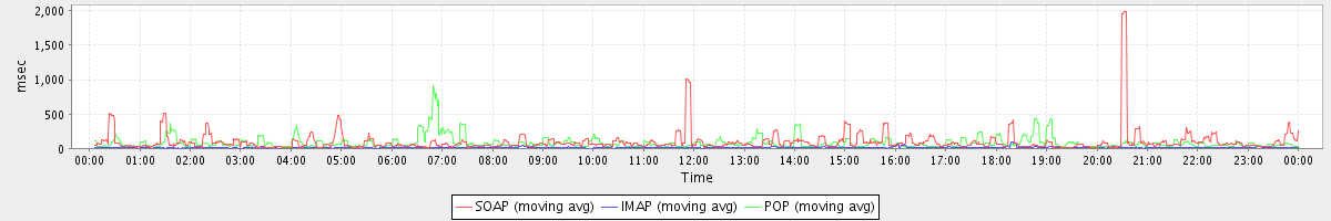 avg(SOAP) = 2.31 avg(IMAP) = 38.76 avg(POP) = 10.08