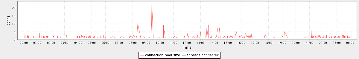 avg(connection pool size) = 0.72 avg(threads connected) = 0.00