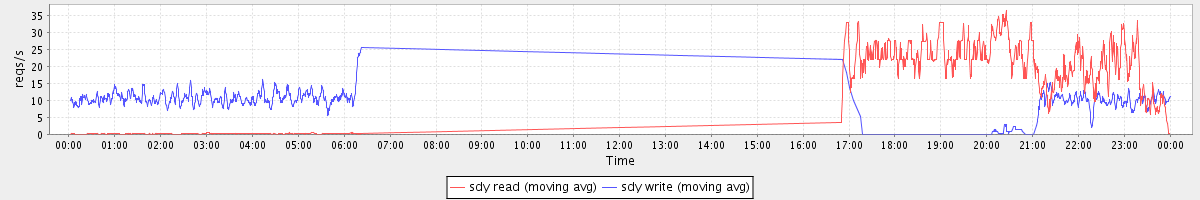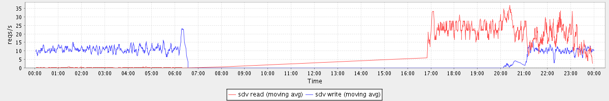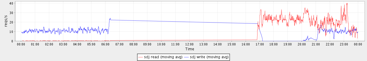 avg(sda read) = 21.80 avg(sda write) = 45.66