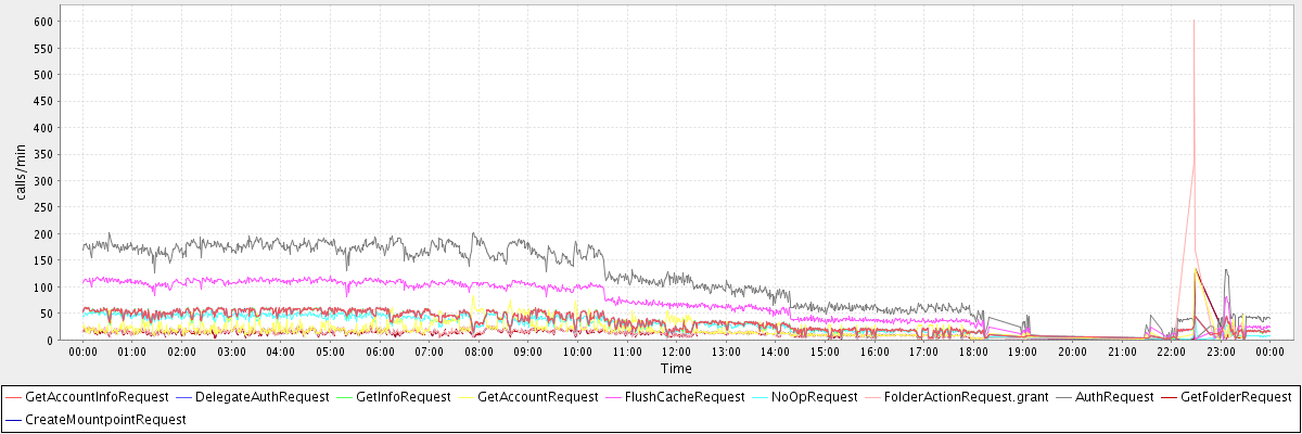 max(GetAccountInfoRequest) = 62.00 max(DelegateAuthRequest) = 62.00 max(GetInfoRequest) = 62.00 max(GetAccountRequest) = 135.00 max(FlushCacheRequest) = 120.00 max(NoOpRequest) = 55.00 max(FolderActionRequest.grant) = 602.00 max(AuthRequest) = 202.00 max(GetFolderRequest) = 135.00 max(CreateMountpointRequest) = 135.00