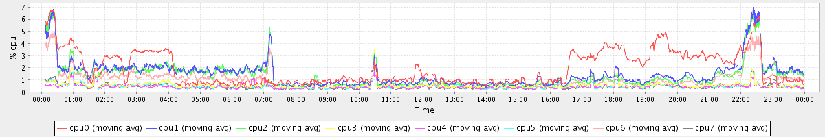 avg(cpu0) = 0.08 avg(cpu1) = 0.06 avg(cpu2) = 0.05 avg(cpu3) = 0.00 avg(cpu4) = 0.00 avg(cpu5) = 0.00 avg(cpu6) = 0.03 avg(cpu7) = 0.00