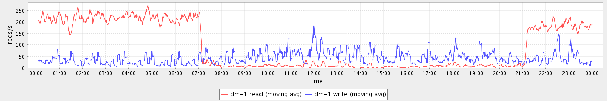 avg(dm-1 read) = 2079.03 avg(dm-1 write) = 175.94