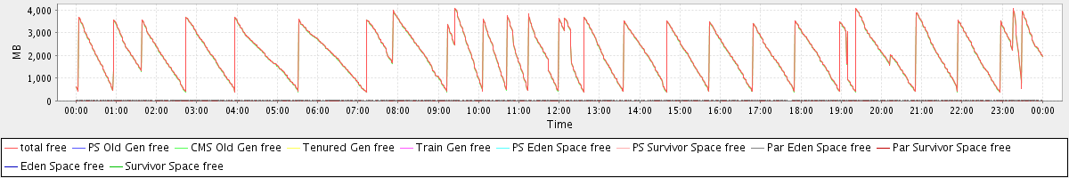 avg(total free) = 2119.58 avg(PS Old Gen free) = 0.00 avg(CMS Old Gen free) = 2098.92 avg(Tenured Gen free) = 0.00 avg(Train Gen free) = 0.00 avg(PS Eden Space free) = 0.00 avg(PS Survivor Space free) = 0.00 avg(Par Eden Space free) = 20.59 avg(Par Survivor Space free) = 0.06 avg(Eden Space free) = 0.00 avg(Survivor Space free) = 0.00
