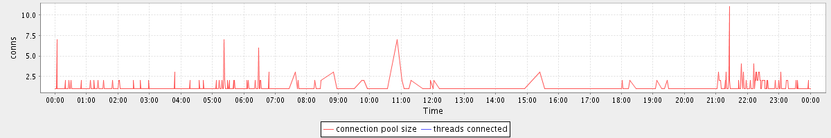 avg(connection pool size) = 0.59 avg(threads connected) = 0.00