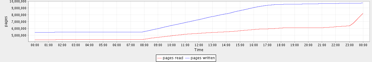 avg(pages read) = 5266377.47 avg(pages written) = 7440535.45