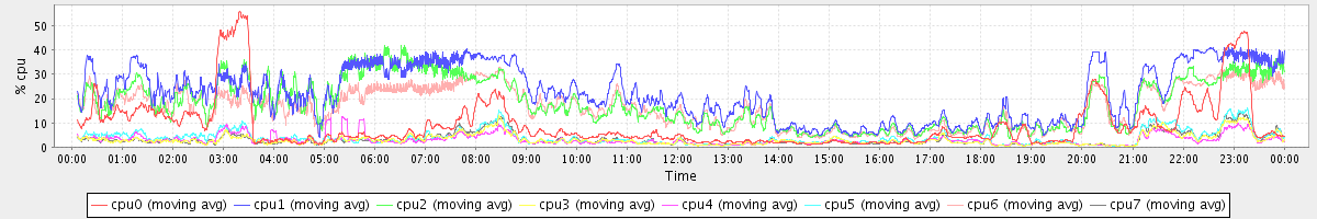 avg(cpu0) = 1.74 avg(cpu1) = 0.36 avg(cpu2) = 0.31 avg(cpu3) = 0.16 avg(cpu4) = 0.15 avg(cpu5) = 0.15 avg(cpu6) = 0.28 avg(cpu7) = 0.15