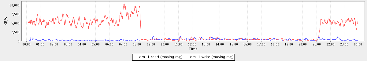 avg(dm-1 read) = 2847.50 avg(dm-1 write) = 356.11
