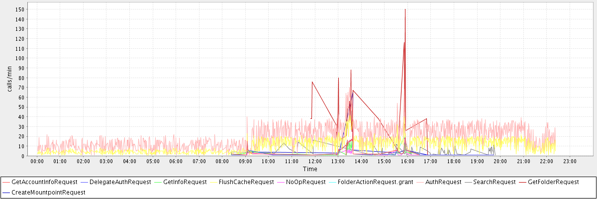 max(GetAccountInfoRequest) = 37.00 max(DelegateAuthRequest) = 37.00 max(GetInfoRequest) = 27.00 max(FlushCacheRequest) = 41.00 max(NoOpRequest) = 26.00 max(FolderActionRequest.grant) = 21.00 max(AuthRequest) = 71.00 max(SearchRequest) = 16.00 max(GetFolderRequest) = 150.00 max(CreateMountpointRequest) = 65.00