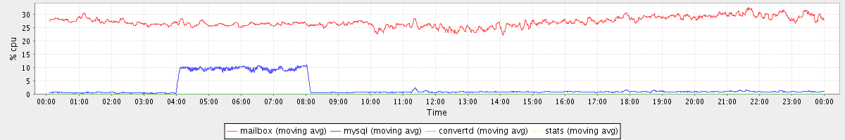 avg(mailbox) = 27.26 avg(mysql) = 2.24 avg(convertd) = 0.00 avg(stats) = 0.00
