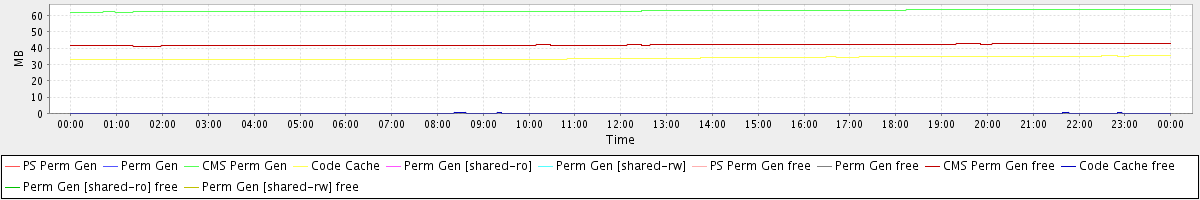 avg(PS Perm Gen) = 0.00 avg(Perm Gen) = 0.00 avg(CMS Perm Gen) = 62.93 avg(Code Cache) = 33.81 avg(Perm Gen [shared-ro]) = 0.00 avg(Perm Gen [shared-rw]) = 0.00 avg(PS Perm Gen free) = 0.00 avg(Perm Gen free) = 0.00 avg(CMS Perm Gen free) = 42.02 avg(Code Cache free) = 0.11 avg(Perm Gen [shared-ro] free) = 0.00 avg(Perm Gen [shared-rw] free) = 0.00