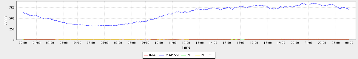 avg(IMAP) = 3.37 avg(IMAP SSL) = 604.98 avg(POP) = 0.57 avg(POP SSL) = 9.55