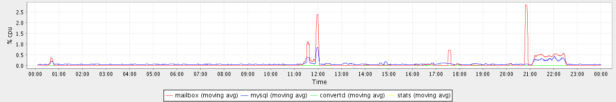 avg(mailbox) = 0.07 avg(mysql) = 0.08 avg(convertd) = 0.00 avg(stats) = 0.00