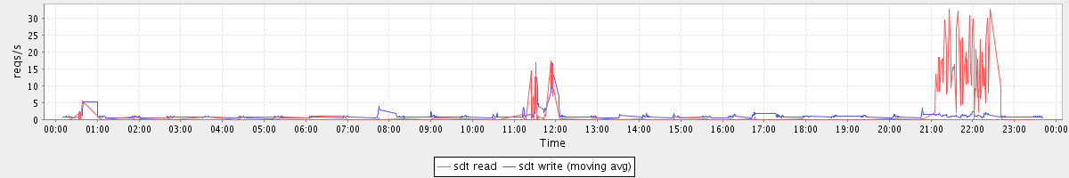 avg(sda read) = 0.34 avg(sda write) = 7.33