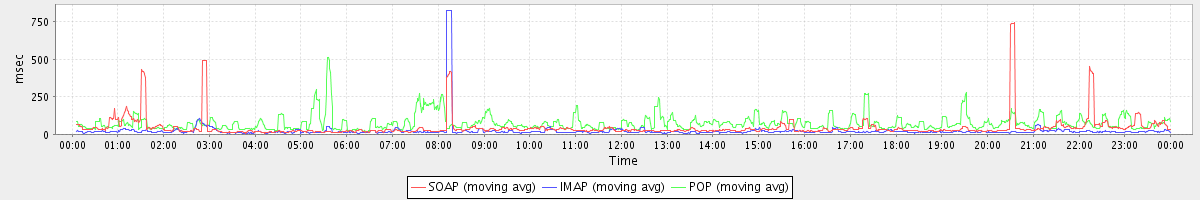 Host zm03.stanford.edu: Mailboxd: Response Time by Client Protocol