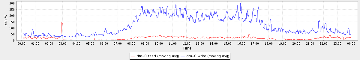 avg(dm-0 read) = 17.41 avg(dm-0 write) = 117.65