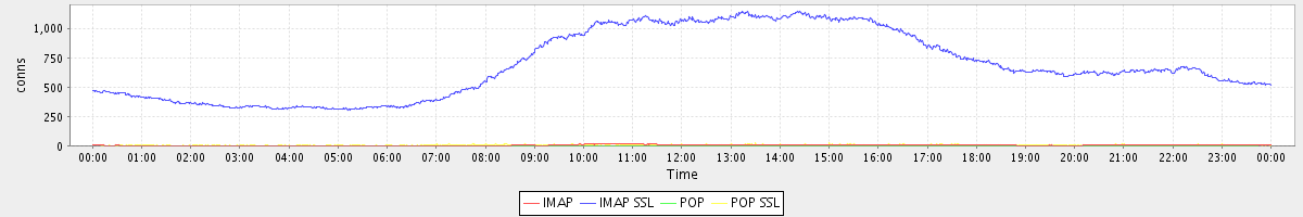 avg(IMAP) = 5.70 avg(IMAP SSL) = 686.14 avg(POP) = 0.13 avg(POP SSL) = 6.53