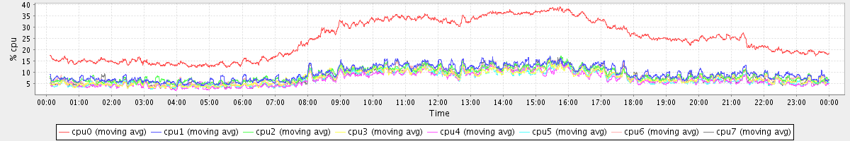avg(cpu0) = 1.89 avg(cpu1) = 0.38 avg(cpu2) = 0.32 avg(cpu3) = 0.17 avg(cpu4) = 0.15 avg(cpu5) = 0.15 avg(cpu6) = 0.27 avg(cpu7) = 0.17