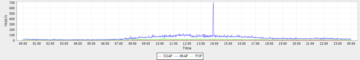 Host zm09.stanford.edu: Mailboxd: Request Rate by Client Protocol