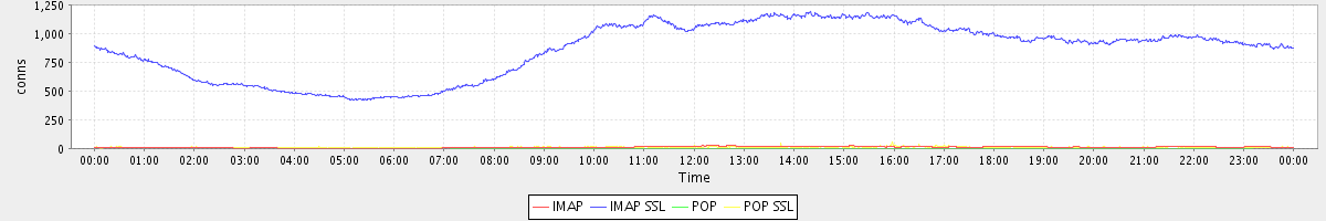 avg(IMAP) = 11.10 avg(IMAP SSL) = 856.56 avg(POP) = 0.01 avg(POP SSL) = 9.93
