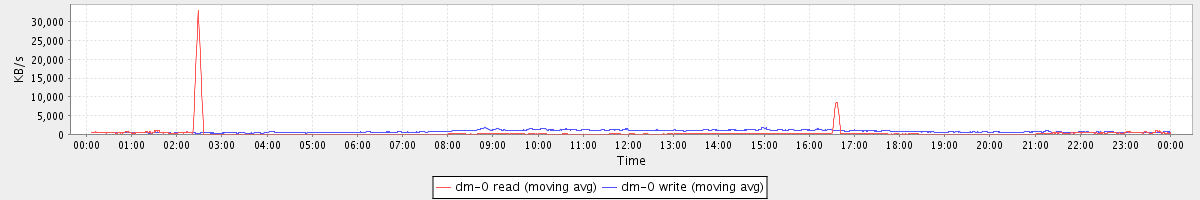 avg(dm-0 read) = 16.19 avg(dm-0 write) = 118.62