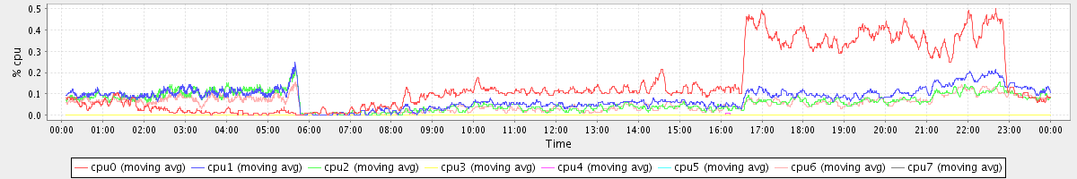 avg(cpu0) = 0.15 avg(cpu1) = 0.08 avg(cpu2) = 0.06 avg(cpu3) = 0.00 avg(cpu4) = 0.00 avg(cpu5) = 0.00 avg(cpu6) = 0.05 avg(cpu7) = 0.00