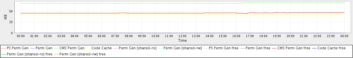 avg(PS Perm Gen) = 0.00 avg(Perm Gen) = 0.00 avg(CMS Perm Gen) = 68.68 avg(Code Cache) = 42.10 avg(Perm Gen [shared-ro]) = 0.00 avg(Perm Gen [shared-rw]) = 0.00 avg(PS Perm Gen free) = 0.00 avg(Perm Gen free) = 0.00 avg(CMS Perm Gen free) = 45.93 avg(Code Cache free) = 0.07 avg(Perm Gen [shared-ro] free) = 0.00 avg(Perm Gen [shared-rw] free) = 0.00