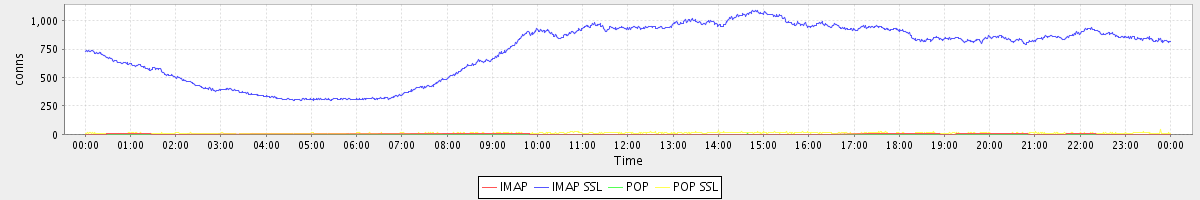 avg(IMAP) = 1.77 avg(IMAP SSL) = 733.53 avg(POP) = 0.67 avg(POP SSL) = 10.50