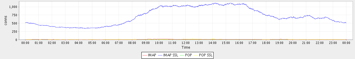 Host zm07.stanford.edu: Mailboxd: Active Connections by Client Protocol