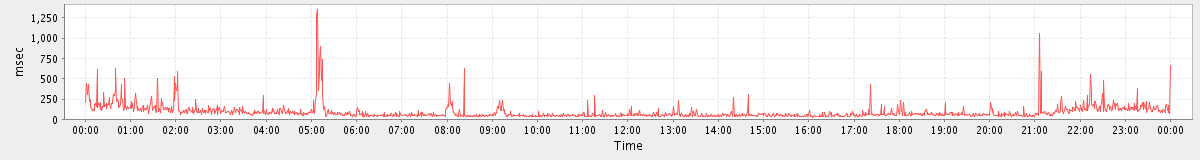 avg(SyncGalRequest) = 3523.37 avg(BackupRequest) = 280311.00 avg(FolderActionRequest.empty) = 3017.97 avg(SendInviteReplyRequest) = 276.80 avg(BackupQueryRequest) = 434.00 avg(CreateAppointmentExceptionRequest) = 278.33 avg(GetQuotaUsageRequest) = 3036.00 avg(ConvActionRequest.delete) = 519.54 avg(SendMsgRequest) = 330.52 avg(FolderActionRequest.read) = 1707.00
