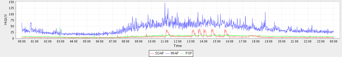 Host zm01.stanford.edu: Mailboxd: Request Rate by Client Protocol