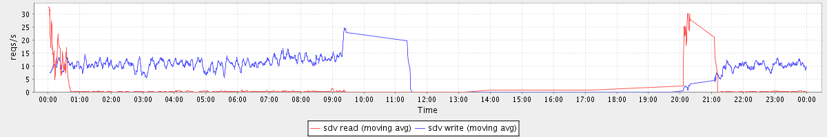 avg(sda read) = 2.61 avg(sda write) = 6.95