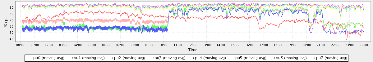 avg(cpu0) = 71.60 avg(cpu1) = 67.71 avg(cpu2) = 70.69 avg(cpu3) = 90.89 avg(cpu4) = 93.68 avg(cpu5) = 91.80 avg(cpu6) = 75.75 avg(cpu7) = 92.10