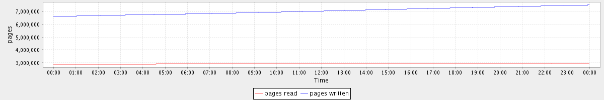 avg(pages read) = 2918986.74 avg(pages written) = 7040244.31