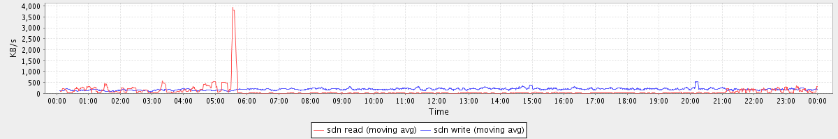 avg(sda2 read) = 0.13 avg(sda2 write) = 4.78