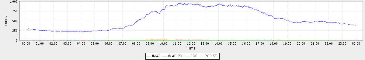 Host zm05.stanford.edu: Mailboxd: Active Connections by Client Protocol