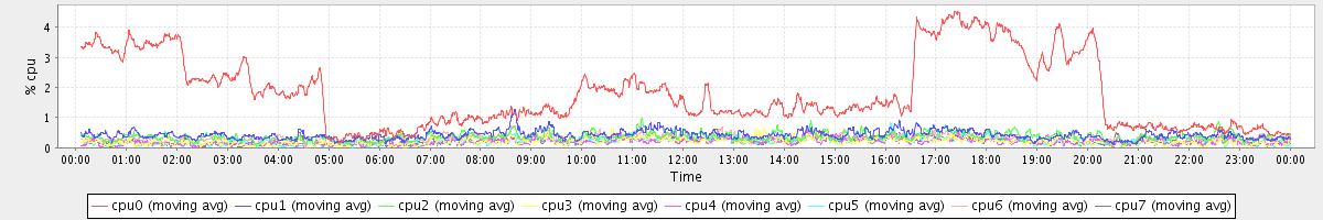 avg(cpu0) = 1.80 avg(cpu1) = 0.43 avg(cpu2) = 0.37 avg(cpu3) = 0.22 avg(cpu4) = 0.20 avg(cpu5) = 0.20 avg(cpu6) = 0.32 avg(cpu7) = 0.22