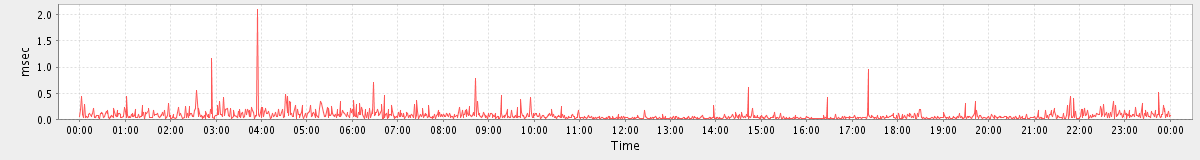 max(GetMsgRequest) = 49.00 max(GetAppointmentRequest) = 29.00 max(SearchRequest) = 109.00 max(SearchConvRequest) = 95.00 max(MsgActionRequest.move) = 174.00 max(MsgActionRequest.delete) = 64.00 max(ConvActionRequest.trash) = 72.00 max(NoOpRequest) = 119.00 max(GetFolderRequest) = 88.00 max(SyncRequest) = 80.00