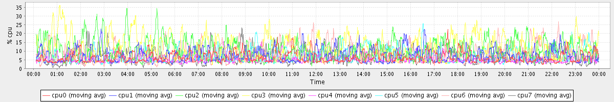 avg(cpu0) = 6.35 avg(cpu1) = 7.50 avg(cpu2) = 11.19 avg(cpu3) = 12.62 avg(cpu4) = 5.51 avg(cpu5) = 7.66 avg(cpu6) = 8.55 avg(cpu7) = 7.07