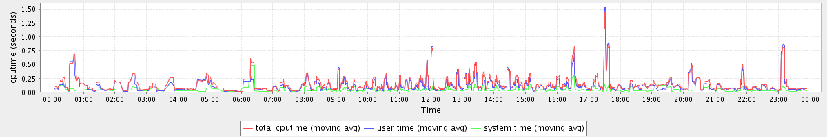 avg(total cputime) = 0.08 avg(user time) = 0.06 avg(system time) = 0.02