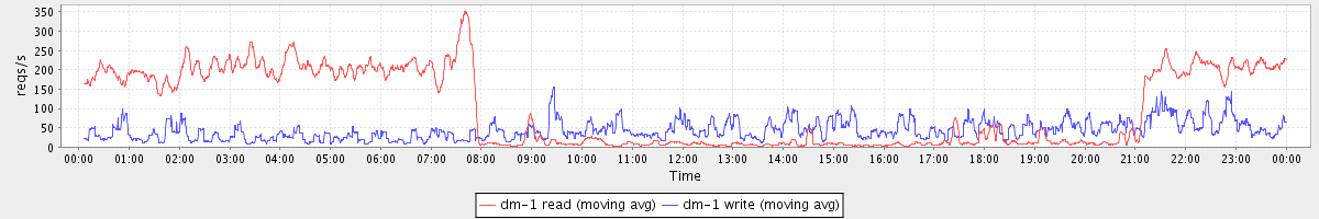 avg(dm-1 read) = 2348.48 avg(dm-1 write) = 175.44