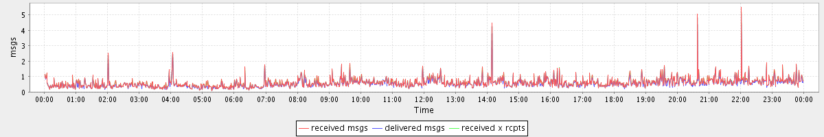avg(received msgs) = 0.61 avg(delivered msgs) = 0.56 avg(received x rcpts) = 0.61