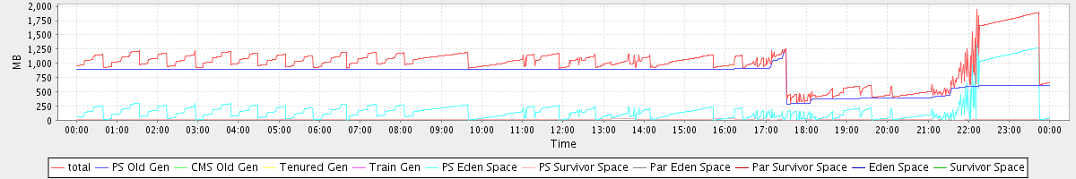 avg(total free) = 599.21 avg(PS Old Gen free) = 447.26 avg(CMS Old Gen free) = 0.00 avg(Tenured Gen free) = 0.00 avg(Train Gen free) = 0.00 avg(PS Eden Space free) = 148.41 avg(PS Survivor Space free) = 3.55 avg(Par Eden Space free) = 0.00 avg(Par Survivor Space free) = 0.00 avg(Eden Space free) = 0.00 avg(Survivor Space free) = 0.00
