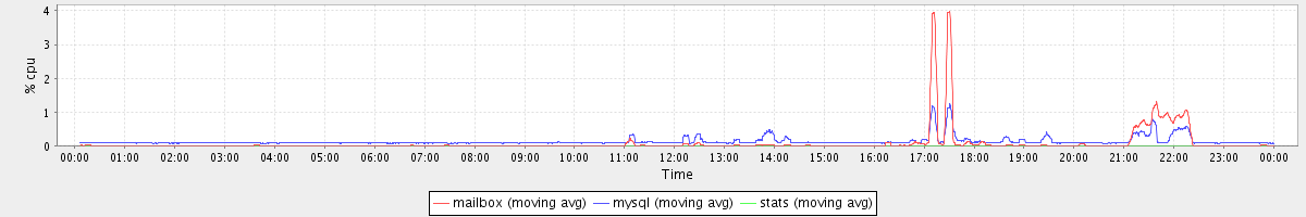 avg(mailbox) = 0.09 avg(mysql) = 0.13 avg(stats) = 0.00