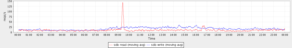 avg(sdb read) = 9.54 avg(sdb write) = 16.16